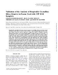 Validation of the analysis of respirable crystalline silica (quartz) in foams us...