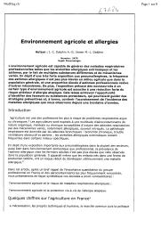 L'environnement agricole est capable de générer des maladies respiratoires professionnelles telles que les alvéolites allergiques extrinsèques et les asthmes, par le fait de multiples substances différentes et de mécanismes variés...