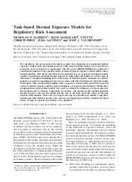 L'évaluation des risques face aux produits chimiques doit comporter une évaluation de l'exposition percutanée. Cet article décrit le développement de modèles capables de prévoir l'exposition cutanée potentielle aux liquides et solides en fonction de la tâche effectuée. Ces modèles ont été développés à partir des valeurs du projet européen RISKOFDERM et ont été groupés selon 6 scénarios appelés unités d'opérations d'exposition cutanée (DEO units).