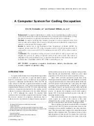 Les informations relatives aux professions sont largement utilisées dans les études épidémiologiques et sont recueillies surtout sur les certificats de décès et de naissance aux Etats-Unis. Le codage d'une telle masse d'informations professionnelles représentait un véritable défi. Cet article décrit comment fonctionne le système de codage informatisé mis au point, rapporte les résultats d'une étude de l'exactitude des codes obtenus à partir du système, et donne quelques exemples de la manière d'utiliser les données codées dans l'état de Washington.