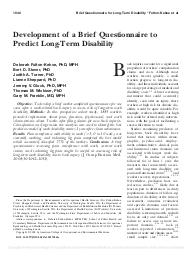 Le but de cette étude étaient d'identifier les éléments prédictifs précoces de l'incapacité de travail chronique liée au syndrome du canal carpien (CTS) et de tester l'hypothèse que les variables de chacun des domaines sociodémographique, clinique, professionnel, et psychosocial n'apporteraient qu'une seule information prédictive. Des travailleurs de l'état de Washington ont été interrogés en moyenne 18 jours après avoir fait une nouvelle demande d'indemnisation pour CTS. Les éléments prédictifs de base d'une incapacité de travail chronique ont été examinés pour les travailleurs qui avaient au moins une journée d'indemnisation (n = 899). Les variables démographiques de base, la gravité des symptômes, les limitations fonctionnelles, la non adaptation du travail, les exigences physiques professionnelles, les conditions psychosociales de travail, et les caractéristiques psychosociales des travailleurs prévoyaient une incapacité chronique de façon bivariée. Chaque domaine de variables ajoutait un élément signficatif à la prévision de l'incapacité chronique. Le modèle final multivarié avait une faible capacité à différencier les sujets avec ou sans incapacité chronique. En conclusion, les facteurs psychosociaux, professionnels, cliniques, et démographiques apparus précocément dans une déclaration apportent une seule information à la prévision d'une incapacité de travail à la suite d'un CTS.