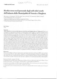 Une enquête a été menée auprès des personnels travaillant dans les crêches et les maternelles de 2 municipalités en Italie. 110 personnes ont répondu à un questionnaire et participé à une interview dans le but de déterminer les fa...