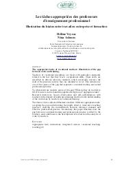 Les enseignants de disciplines professionnelles sont confrontés à un ensemble de prescriptions spécifiques du fait de la visée professionnelle des savoirs à enseigner. Ces savoirs sont prescrits par les référentiels. La mise en mot imposée par l'écriture des référentiels a un effet réducteur de l'activité professionnelle visée par les formations. Elle est une des causes du hiatus entre formation et travail. Les enseignants perçoivent-ils ce hiatus ? Quelles tâches se donnent-t-ils à réaliser à son propos ? Des réponses sont apportées par la description de tâches appropriées. Des entretiens de recherche, observations de séance de cours et autoconfrontations dans le secteur de l'enseignement en aménagement paysager permettent de mieux comprendre le travail des enseignants de filières professionnelles. Les données illustrent différentes tâches appropriées de professeurs : assumer le hiatus en l'annonçant comme un donné aux apprenants, enseigner des pratiques innovantes, faire apparaître les contradictions entre pratiques du référentiel et pratiques professionnelles effectives. Cet article illustre une réduction du hiatus et contribue au développement des recherches sur l'analyse du travail des enseignants. Cet article est disponible en version pdf sur le site www.activites.org.