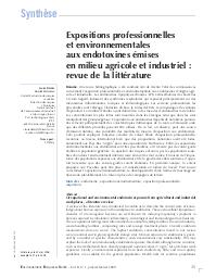Expositions professionnelles et environnementales aux endotoxines émises en milieu agricole et industriel : revue de la littérature.