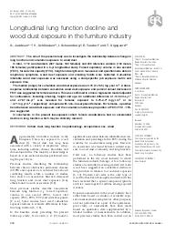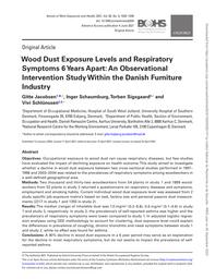 Le but de cette étude était d'examiner la survenue de nouveaux symptômes en relation avec l'exposition aux poussières de bois dans un suivi de 6 ans. 1 377 travailleurs du bois (1 137 hommes et 240 femmes) et 297 témoins (137 hommes et 160 femmes) ont participé à l'enquête. Les données sur les symptômes respiratoires, l'emploi et les habitudes tabagiques ont été recueillies. L'exposition aux poussières de bois a été évaluée à partir des mesures des poussières au début de l'étude, et l'exposition cumulée par des matrices emploi-exposition spécifiques de l'étude et les durées d'exposition. La moyenne géométrique (et déviation standard) du niveau de poussières a diminué pendant la période de l'étude de 0,94 (2,1) à 0,60 (1,6) mg/m3. L'analyse ajustée a révélé des associations positives pour la proportion d'incidence cumulée de bronchite chronique et de toux quotidienne chez les femmes exposées versus les femmes témoins. L'incidence cumulée de toux quotidienne et de bronchite chronique était associée à l'exposition aux poussières de bois de départ de façon dose-dépendante. En conclusion, les résultats de cette étude suggèrent que les femmes, mais pas les hommes, avaient une incidence élevée de symptômes respiratoires malgré le faible niveau d'exposition dans l'industrie du meuble au Danemark. Ils soutiennent que des niveaux de poussières de bois bien au-dessous des limites d'exposition professionnelle habituelles aux poussières de bois (5 mg/m3 dans l'Union européenne) entraînent l'apparition de symptômes respiratoires.