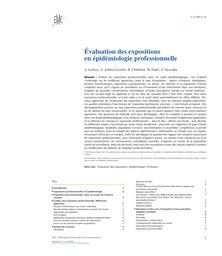 Publié dans : Archives des maladies professionnelles et de l'environnement, vol. 70, n° 4, septembre 2009, pp. 417-424, ill., bibliogr.
