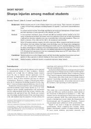 Le but de cette étude était d'évaluer les connaissances des étudiants en médecine sur la prévention et la prise en charge des blessures par objets piquants et leurs expériences de telles expositions au cours de l'année 2007. Une enquête transversale, par l'intermédiaire d'internet, portant sur des étudiants en 4e et 5e année de médecine de l'université d'Aberdeen en Ecosse a été menée. Un e-mail d'invitation et deux rappels électroniques ont été envoyés, à jours donnés, à la population de l'étude : ils contenaient un résumé de l'étude et le lien vers un questionnaire anonyme. Parmi les 395 étudiants ayant reçu le courrier, 238 (60 %) ont répondu. Par rapport aux étudiants de 4e année, ceux qui étaient en fin d'études avaient des scores moyens de connaissances plus élevés sur la prise en charge des blessures par objets piquants. Au total, 18 % rapportait rengainer les aiguilles usagées et 31 % rapportaient jeter les objets piquants pour les autres, ce qui indique une mauvaise observance des précautions standards. Dans l'éventualité d'une blessure, 29 % déclaraient nettoyer la blessure. Seulement 44 % d'entre eux étaient au courant des pratiques de déclaration des expositions. Au total, 11 % des étudiants avaient été au moins une fois confrontés à une blessure par piqûre contaminée en 2007 et, parmi eux, 40 % avaient déclaré l'incident le plus récent. En conclusion, les résultats montrent que les étudiants en médecine sont à risque de blessures par objets coupants et leurs connaissances concernant la prévention et la prise en charge de ces expositions sont limitées.