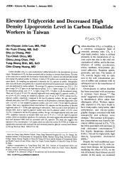 Les ouvriers des cimenteries sont exposés au chrome en raison de la concentration élevée de chrome hexavalent (chromate) dans le ciment. Le sulfate ferreux (FeSO4) a la propriété de convertir le chrome hexavalent en chrome trivalent, dont la biodisponibilité est moindre. Ainsi, l’adjonction de FeSO4 au ciment a permis de diminuer la prévalence des dermatites chez les ouvriers, cependant l’influence de la dermatite sur la capture totale du chrome, avec ou sans FeSO4, n’a pas été examinée. Le but de cette étude était de comparer les taux urinaires de chrome, avant et après l’addition du FeSO4, chez les ouvriers de cimenteries souffrant ou non de dermatite des mains, le chrome urinaire étant utilisé comme biomarqueur de l’exposition au chrome hexavalent. 35 ouvriers ont participé à cette étude sur 2 années consécutives : travail en 2003 sans adjonction de FeSO4, et en 2004 après ajout de FeSO4. Les concentrations urinaires du chrome décroissent de manière très significative après ajout de FeSO4, et ce d’autant plus chez les ouvriers atteints de dermatite des mains. Une nette réduction est aussi observée chez les ouvriers souffrant de dermatite pendant les 2 années 2003 et 2004. En conclusion, les résultats de cette étude montrent que le sulfate ferreux diminue la charge corporelle totale en chrome, particulièrement chez les ouvriers atteints de dermatite des mains grave et chronique.