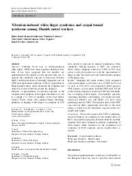 Le but de cette étude était d'explorer la relation entre l'exposition aux vibrations du système main-bras (HAV) et des symptômes vasculaires, neurosensoriels et musculo-squelettiques, ainsi que des symptômes du syndrome du canal carpien (SCC) dans une population de travailleurs de la métallurgie de Finlande. Un questionnaire sur l'exposition et les symptômes des HAV a été envoyé à 530 métallurgistes. Ceux qui ont signalé la maladie des doigts blancs (phénomène de Raynaud), des engourdissements ou picotements dans les doigts ou des symptômes du syndrome du canal carpien (CTS) ont été invités à passer des examens complémentaires (n = 133). Leur exposition cumulative aux HAV tout au long de leur vie, leur niveau d'exposition actuelle et l'historique de l’utilisation des outils causant des vibrations d'impulsion ont été évalués. L'association des différents symptômes de l'exposition avec les HAV a été évaluée par des analyses de régression logistique ajustées pour l'âge et le tabagisme. Les seuils de perception des vibrations (VPTs) ont été testés selon la norme ISO 13091-1:2001. Un indice d'exposition cumulée a ainsi été calculé. Les résultats ont montré que la moyenne d'exposition aux vibrations quotidienne était de 1,6 ms-2 et que 39 % des participants avaient des antécédents d'exposition à des vibrations d'impulsion. Parmi les personnes ayant répondu au questionnaire, 49 % ont déclaré la maladie des doigts blancs, 66 % des symptômes neurosensoriels, 56 % des symptômes de la CTS et 75 % des symptômes musculo-squelettiques. L'indice d'exposition cumulée était associé aux symptômes de doigts blancs [odds ratio (OR) 2,4-4,5], aux symptômes de CTS (OR 4,6-6,1), aux symptômes neurosensoriels (OR 5,7-17,3) et musculo-squelettiques (OR 4,7- 5,4). Le risque de tous ces symptômes augmentait parallèlement à la hausse de la dose cumulative de vibrations. Il a aussi été démontré que l'historique personnelle de l'exposition aux vibrations par impulsion avait un effet significatif sur la survenue des symptômes neurosensoriels (P = 0,024). L'exposition actuelle au HAV était aussi significativement corrélée avec tous les symptômes mentionnés ci-dessus. En conclusion, il semble y avoir une relation dose-réponse entre la dose de vibrations HAV cumulée tout au long de la vie et la maladie des doigts blancs, les symptômes neurosensoriels, les symptômes de la CTS et les symptômes musculo-squelettiques des membres supérieurs et du cou, dans le groupe des travailleurs de la métallurgie de cette étude. Le risque de symptômes neurosensoriels est le plus significativement lié à l'exposition au HAV et aux vibrations par impulsion. Des études complémentaires sont nécessaires pour confirmer ces résultats, notamment dans d'autres groupes professionnels en tenant compte de l'effet synergique possible avec la charge de travail.