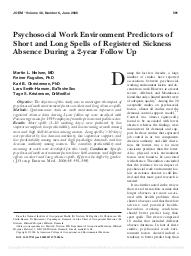 L’objectif de cette étude était d’examiner les associations entre les facteurs psychosociaux et physiques et les problèmes de santé psychologiques, tout en tenant compte des différences entre les groupes professionnels dans des professions à prédominance féminine. Les quatre groupes professionnels étudiés étaient : les infirmières, les aides-soignantes, les femmes du secteur du nettoyage et de l'industrie laitière. Les relations entre les exigences émotionnelles et quantitatives, le soutien social, le mal de dos, le stress et le comportement ont été examinées en utilisant la modélisation structurale par équation. Les résultats ont confirmé un modèle spécifique pour chacun des groupes : le schéma général est demeuré le même entre les groupes pour la plupart des facteurs étudiés alors que les facteurs psychosociaux avaient des impacts différents sur la santé et interagissaient différemment selon les groupes. Les résultats indiquaient également des liens entre les facteurs psychosociaux et une mauvaise santé physique. En conclusion, l'étude a confirmé l'importance de faire une distinction entre les différents groupes professionnels à prédominance féminine, plutôt que de parler globalement des conditions de travail des femmes. Cette étude a également souligné l'importance de considérer les facteurs de risque psychosociaux lors de l'examen de santé physique (dans le cas présent, le mal de dos).