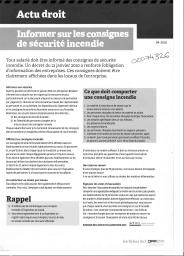 Cet article présente de manière synthétique les modalités d'information des salariés des consignes de sécurité incendie prévues dans l'établissement. Il s'intéresse en particulier aux nouvelles dispositions issues du décret n° 2010-78 du 21 janvier 2010 qui ont mis en place une information particulière des salariés sur les consignes de sécurité incendie, les instructions contenues dans la consigne de sécurité incendie ainsi que sur l'identité des personnes chargées de la mise en œuvre du matériel d'extinction. Le contenu de la consigne de sécurité incendie, les modalités d'affichage, l'équipement en extincteurs de l'entreprise, la signalisation des voies d'évacuation et l'obligation de disposer d'une alarme sonore sont, en outre, rappelés.