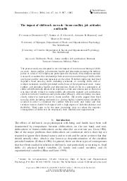L'objectif de cette étude était d'examiner comment les exigences du travail affectaient le bien-être du conjoint. L'hypothèse de départ était que ces exigences professionnelles avaient une influence négative sur le bien-être des partenaires, à travers un conflit travail-famille (WFC), et entraînaient un affaiblissement de la qualité de la relation (diminution du soutien social et sentiment d'insécurité sociale vis-à-vis du partenaire). 99 couples japonais ont participé à l'enquête. Les résultats de cette étude suggèrent que des exigences professionnelles élevées sont à l'origine de conflits travail-famille et de mauvaises relations dans les couples, et peuvent ainsi affecter négativement le bien-être des conjoints.