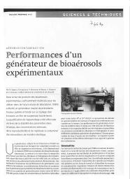 Aérobiocontamination. Performances d'un générateur de bioaérosols expérimentaux.