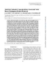 Airborne asbestos concentrations associated with heavy equipment brake removal.