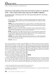 (Rechercher des articles de bonne qualité sur les études d'intervention en santé au travail : que manque-t-il réellement lorsque l'on n'utilise que la base de données Medline ?).
