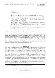 En mai 2004, l'Organisation mondiale de la santé (Région européenne de l'OMS) a convoqué une assemblée composée de ses centres collaborateurs en santé au travail pour échanger sur le thème de la santé mentale au travail. Cet artic...