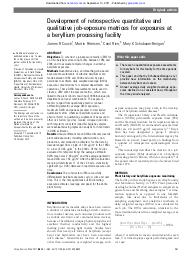 L’objectif de cette étude était de construire une matrice emplois-expositions pour une entreprise de transformation du béryllium situé dans l'Ohio (Etats-Unis) entre 1953 et 2006, et d’évaluer les changements temporels de l’exposition au béryllium présent dans l’air. L’exposition au béryllium a été évaluée de manière quantitative (moyenne d’exposition, exposition maximale, et pic d’exposition) et de manière qualitative (espèces chimiques de béryllium et forme physique). Cette matrice a permis de différencier l’exposition au béryllium entre 12 métiers, et en fonction du temps. L’analyse a montré une diminution de l’exposition entre 1950 et 2006 pour 11 métiers sur 12, avec un pic de 1,39 microgrammes/m3 dans les années 1950 et un creux de 0,33 microgrammes/m3 dans les années 2000.