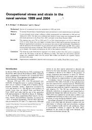 Job stressors in naval personnel serving on ships and in personnel serving ashore over a twelve month period.