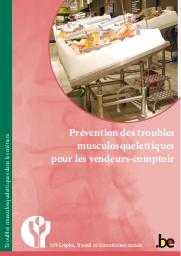 Ce document, très illustré, est destiné aux vendeurs – comptoir. Ces personnes font de la vente et du réapprovisionnement (mise en rayon) dans de petits commerces et dans les espaces de vente spécifiques (poissonnerie, fromagerie, boucherie, primeur, produits surgelés, etc.) de grandes surfaces. Le document propose des mesures de prévention concrètes concernant les troubles musculosquelettiques (TMS). Pour les auteurs, les TMS comprennent les affections des membres supérieurs et inférieurs et les maux de dos. Les principaux risques sont des postures contraignantes combinées à un port de charges lourdes, une mauvaise organisation du travail et un mauvais environnement de travail (froid, courants d’air, mauvais éclairage et bruit). Les principales préconisations sont les suivantes : travailler à la bonne hauteur, prévoir un accès facile au poste de travail, déposer les objets sur des rehausses, ranger à la bonne hauteur, utiliser des aides techniques (chariots basculants associé à une trémie, transpalettes ou plateaux à roulette), réduire les distances d’atteinte des objets, améliorer les caractéristiques des charges (réduire le poids et le volume, adapter des poignées, etc.), utiliser des aides techniques pour réduire les efforts et les répétitions, améliorer les conditions de circulation. L’utilisation d’aides techniques, une organisation différente du travail, de bonnes postures de travail et des exercices d’étirement sont proposés.