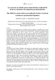 La croyance au monde juste comme facteur explicatif de diverses réactions à des injustices professionnelles.