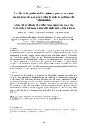 Le rôle de la qualité de l’expérience groupale comme modérateur de la relation entre le style de gestion et la victimisation.