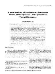 Les études sur les effets de l'exposition professionnelle au plomb sur les concentrations d'hormones thyroïdiennes dans le sang n'ont pas donné des résultats cohérents. Cette méta-analyse a été effectuée pour évaluer l'effet de l'...