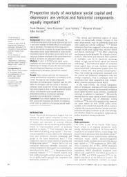 Une étude de cohorte prospective des employés du service public finlandais a examiné l'association entre le capital social professionnel et la dépression. Les données ont été obtenues pour 33 577 employés, sans antécédents récents...