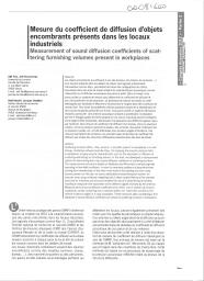 Les objets encombrants qui diffusent le son (les bureaux, les chaises, les armoire, etc.) sont souvent présents dans les ateliers de travail. Des logiciels prévisionnels d’acoustique comme Ray+ permettant de tracer des cartographies du champ acoustique dans des lieux de travail utilisent les caractéristiques acoustiques comme l'absorption ou la diffusion acoustique des parois à relief. Dans ce travail, les auteurs ont utilisé un système de mesure pour déterminer le coefficient de diffusion in situ d’ameublement et de personnes. La technique de mesure est basée sur celle développée par Vorländer et Mommertz fonctionnant à l'origine dans des conditions de champ libre. Pour éviter les problèmes d'échos parasites venant de la réverbération et des sources bruyantes présentes sur le site, un système d'émission/réception particulier a été utilisé. Une antenne acoustique utilisant la pondération multipolaire permet le filtrage spatial de l'écho parasite et une source impulsive permet l'utilisation d'une large fenêtre temporelle, aboutissant à la séparation des différents signaux reçus par l'antenne. Des mesures du coefficient de diffusion d'un bureau, d’une ou plusieurs chaises, d’une ou plusieurs personnes assises, des armoires, des parois contenant une ou plusieurs cavités, etc., ont été effectuées pour plusieurs angles d'incidence. Ces mesures permettent de constituer une première base de données du coefficient de diffusion par octave des structures diffusantes présentes dans des lieux de travail.