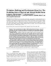 Workplace bullying and psychotropic drug use : the mediating role of physical and mental health status.