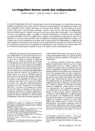 Le statut d’indépendant abrite des situations que l’on sait très hétérogènes. Les travailleurs concernés semblent ne partager qu’un même profil de temps de travail marqué par de nombreuses heures, une forte variabilité et une relative autonomie de décision en la matière. L’article propose de suivre la piste d’une autre caractéristique commune, relative à leur état de santé, que les indépendants déclarent meilleur que les salariés bien qu’ils soient un peu plus âgés en moyenne. Cette hypothèse est testée sous plusieurs angles et validée en écartant notamment l’éventuel jeu des catégories socioprofessionnelles derrière les différences de statuts. Sont également comparées les suites de la maladie sur l’activité professionnelle selon les différentes situations professionnelles retenues. Les résultats tout à la fois confirment le meilleur état de santé relatif des indépendants et suggèrent un mode singulier d’articulation entre la santé et le travail justifiant la poursuite des travaux sur la santé de ce groupe particulier pour en comprendre les spécificités et pour compléter les connaissances sur les mécanismes généraux par lesquels la santé et le travail se font constamment écho.