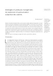Idéologies et pratiques managériales : du taylorisme à la précarisation subjective des salariés.