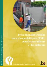 Les ferrailleurs et les coffreurs sont exposés au risque de troubles musculosquelettiques (TMS). Abondamment illustré, ce document s’adresse à cette catégorie de salariés. Il cherche à répondre aux questions suivantes : qu’est-ce qu’un trouble musculosquelettique ? Quelle est l’importance du problème ? Quels sont les principaux risques de TMS ? Comment les prévenir ? Les TMS comprennent les affections des membres supérieurs et inférieurs, de la nuque et du dos. Les principaux risques de TMS dans ce secteur sont liés aux positions, aux efforts, à la répétition des gestes, aux vibrations, etc., mais aussi à l’organisation du travail ou à l’environnement (froid, courant d’air, éclairage défectueux, bruit soutenu). Les principales préconisations sont les suivantes : adapter les postes de travail, les outils et le mobilier ; améliorer l’organisation du travail ; adopter de bonnes postures de travail. Des exercices d’étirement et d’assouplissement sont également proposés.