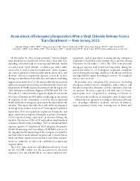 Assessment of emergency responders after a vinyl chloride release from a train derailment. New Jersey, 2012.