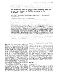 Shift work and mental health sickness absence : a 10-year observational cohort study among male production workers.