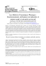 Dans un contexte de mutation des entreprises, on assiste depuis 2013 à une émergence de robots, exosquelettes et autres nouvelles technologies d’assistance physique (NTAP) notamment pour tenter de répondre aux problématiques de TMS et de charge physique de travail excessive. Ce document a comme objectif de présenter les principaux points de vigilance liés à l’utilisation des robots et dispositifs d’assistance physique, dont les retours d’expérience ont pu être réalisés entre 2013 et 2016.
