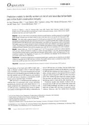 Prediction models to identify workers at risk of sick leave due to low-back pain in the Dutch construction industry.