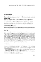 Les asthmes professionnels en France et le syndrome de Brooks.