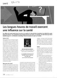 Les effets du travail posté et/ou de nuit sur la santé et la sécurité des travailleurs ont déjà fait couler beaucoup d'encre. Les conséquences des longues heures de travail, en revanche, ont été beaucoup moins étudiées jusqu'ici. ...
