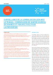 L'objectif de cette étude a été de comparer les données du système français d'indemnisation des accidentés du travail et de trois réseaux de surveillance, afin de déterminer la possibilité d'identifier les secteurs industriels qui ont le plus besoin de programmes de prévention des lombalgies. Quatre bases de données et deux types d'indicateurs de la région centre-ouest ont été analysés : surveillance des symptômes musculo-squelettiques dans la population active (indicateurs de lombalgie LBP et de sciatique discale DRS ; étude Cosali) ; surveillance des maladies professionnelles non indemnisées (indicateurs LBP et DRS) ; surveillance de la chirurgie discale lombaire (LDS) dans la population générale (indicateur DRS) ; système français d'indemnisation (hernie discale avec radiculopathie causée par des vibrations ou la manutention de matériaux ; indicateur DRS). L'étude portait sur les personnes âgées de 20 à 59 ans. L'indice de prévention (IP) a été utilisé pour classer les secteurs industriels selon le nombre de cas et le taux de prévalence/incidence. La construction et l'industrie manufacturière ont été les premiers secteurs en termes d'IP pour les hommes pour tous les indicateurs et bases de données. En outre, les transports et l'agriculture n'ont pas toujours été soulignés. Pour les femmes, le secteur manufacturier était le premier secteur (à l'exception de l'étude LDS : secteur de la santé), suivi du secteur de la santé. Des réseaux spécifiques de surveillance épidémiologique (études LDS et Cosali) ont permis de classer le plus grand nombre de secteurs sur les 17 classifiés. Pour les indicateurs DRS, l'étude LDS a classé 13 secteurs pour les deux sexes, et pour les indicateurs LBP, l'étude Cosali a classé 8 et 7 secteurs chez les hommes et les femmes, respectivement. Ces résultats ont montré la complémentarité des quatre programmes. Un système de surveillance à composantes multiples permet de détecter les secteurs industriels qui ont le plus besoin de programmes de prévention.
