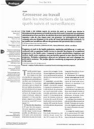 Une étude a été réalisée auprès de services de santé au travail pour décrire le déroulement des grossesses au travail du secteur de la santé. Comparées aux employées administratives et aux ouvrières, les salariées du secteur santé étaient particulièrement exposées à plus de cinq risques pour une grossesse. Les aménagements de poste constatés sont peu fréquents et les arrêts de travail particulièrement nombreux. Ce qui justifie une surveillance efficace des grossesses des personnels dans ce secteur.