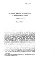 Souffrance, défenses, reconnaissance. Le point de vue du travail.