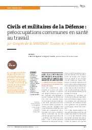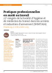 Le 31e congrès de la Société d’hygiène et de médecine du travail dans les armées et industries d’armement (SHMTAIA) s’est déroulé à Bordeaux les 12 et 13 octobre 2017. Ce compte-rendu résume une sélection des interventions portant sur les outils d’évaluation du risque cardiaque, le diabète et l’aptitude médicale à la conduite, les données issues de la cohorte ADDICTAQUI relatives aux pratiques addictives, les nanomatériaux, les impacts des troubles du sommeil dans le burnout, les évolutions réglementaires de la médecine du travail, la qualité de l’air dans les cabines d’avion et l’évaluation des doses de rayonnements ionisants reçues au cristallin lors de procédures interventionnelles.