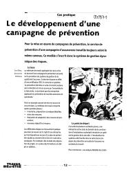 Cet article présente une méthode de travail pour développer une campagne de prévention dans une entreprise. Cette méthode comporte 4 grandes phases : inventaire et analyse détaillée du sujet ; choix des mesures ; évaluation et adaptation des mesures de prévention ; nouveaux objectifs et moyens. Elle a été appliquée dans une entreprise de construction d'installations.