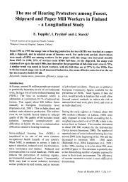 L'influence de différents facteurs de risque sur les pertes auditives induites par le bruit a été étudiée sur une population de 685 sujets travaillant en forêt, sur des chantiers navals ou dans l'industrie du papier. La carrière professionnelle, l'état de santé, les facteurs environnementaux et l'exposition au bruit de chaque travailleur sont autant de facteurs qui ont été puisés dans la banque de données NoiseScan. Le seuil auditif moyen à 4 kHz était de 21 dB + ou - 20,3 dB HL. Ce seuil s'est révélé corrélé significativement à l'âge, au niveau de bruit à la source et au niveau d'exposition au bruit. Cependant, ces facteurs ne peuvent expliquer à eux seuls que 2 dB HL de la variation des seuils auditifs. Par contre, le caractère impulsionnel des bruits de chantiers navals, comparé au caractère continu des bruits en forêt, provoque jusqu'à 12 dB HL d'élévation des seuils à 4 kHz. Une corrélation a été également étudiée entre les valeurs de seuils auditifs et le taux de cholestérol sanguin, la consommation d'analgésiques, la pression artérielle et le tabagisme. Si le taux de cholestérol aggrave les pertes auditives pour des groupes d'individus exposés à de forte comme à de faible intensité de bruit, il n'en est pas de même pour la consommation d'analgésiques qui augmente les pertes auditives que pour le groupe de sujets exposés à de forte intensité. La pression artérielle, le tabagisme, un taux de cholestérol élevé et la consommation d'analgésiques expliquent jusqu'à 36 % des variations des seuils auditifs à 4 kHz, tandis que la seule exposition au bruit explique 25 % de ces variations.