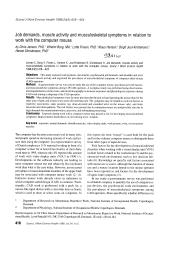 L'activité électromyographique (EMG) des muscles des épaules et de l'avant-bras a été enregistrée au cours d'une tâche sur ordinateur standardisée dans des conditions expérimentales, avec différentes combinaisons de contrainte temporelle, de précision, et de charge mentale, afin d'étudier l'interaction de ces facteurs et leurs effets sur la réponse musculaire au cours de ce type de tâche. Le travail durait 5 minutes, et était effectué par 14 femmes faisant de la conception assistée par ordinateur avec 8 combinaisons d'exposition aux contraintes. Des critères de performance ont été définis et enregistrés, ainsi que l'activité EMG au niveau des trapèzes, sous-épineux, deltoïdes, et extenseurs des doigts. Un électrogoniomètre a été utilisé pour mesurer les positions des poignets et les gestes. En conclusion, les interactions entre le rythme de travail et les autres facteurs de risque doivent être prises en compte quand des effets liés aux changements d'exposition sur la réponse musculaire sont à prévoir. Alors seulement on pourra savoir si la modification des tâches constituera ou non un risque d'apparition de troubles ostéo et musculo-articulaires.