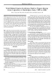 Afin de décrire les blessures liées au travail des charpentiers de cloisons sèches, de calculer le taux d'accidents et d'explorer les groupes à haut risque, une cohorte historique de charpentiers de cloisons sèches a été identifiée et les demandes de prises en charge des travailleurs ont été analysées entre 1989 et 1995. Les travailleurs de la construction ont des taux d'accidents non mortels plus élevés que les autres travailleurs des Etats-Unis.