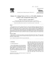 Impact of a change from an 8-h to a 12-h shift schedule on workers and occupational injury rates.