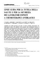 L'Association italienne de médecine préventive des travailleurs du secteur de la santé a trouvé opportun de fournir des indications pratiques pour appliquer les "Recommandations" pour la sécurité et la santé des travailleurs exposés aux cytostatiques dans le secteur sanitaire. L'aspect principal retenu est celui de la centralisation des activités (rationalisation des activités avec les garanties nécessaires de sécurité et réduction du nombre d'exposés). Ce processus doit s'accompagner d'interventions de type organisationnel et de contrôle formalisées par des procédures spécifiques. Procédures de travail. Evaluation du risque. Protection collective et protection individuelle. Surveillance médicale.