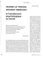 Quand le travail devient indécent. Le harcèlement psychologique au travail.