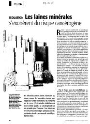 Les laines minérales (laines de verre, de roche, de laitier) ont été reclassées dans le groupe 3 (agents ne pouvant pas être classés quant à leur cancérogénicité pour l'homme) par le CIRC (Centre international de recherche contre le cancer) en octobre 2001. Cet article traite du classement de ces fibres et présente le point de vue de certains experts scientifiques ainsi que des industriels.